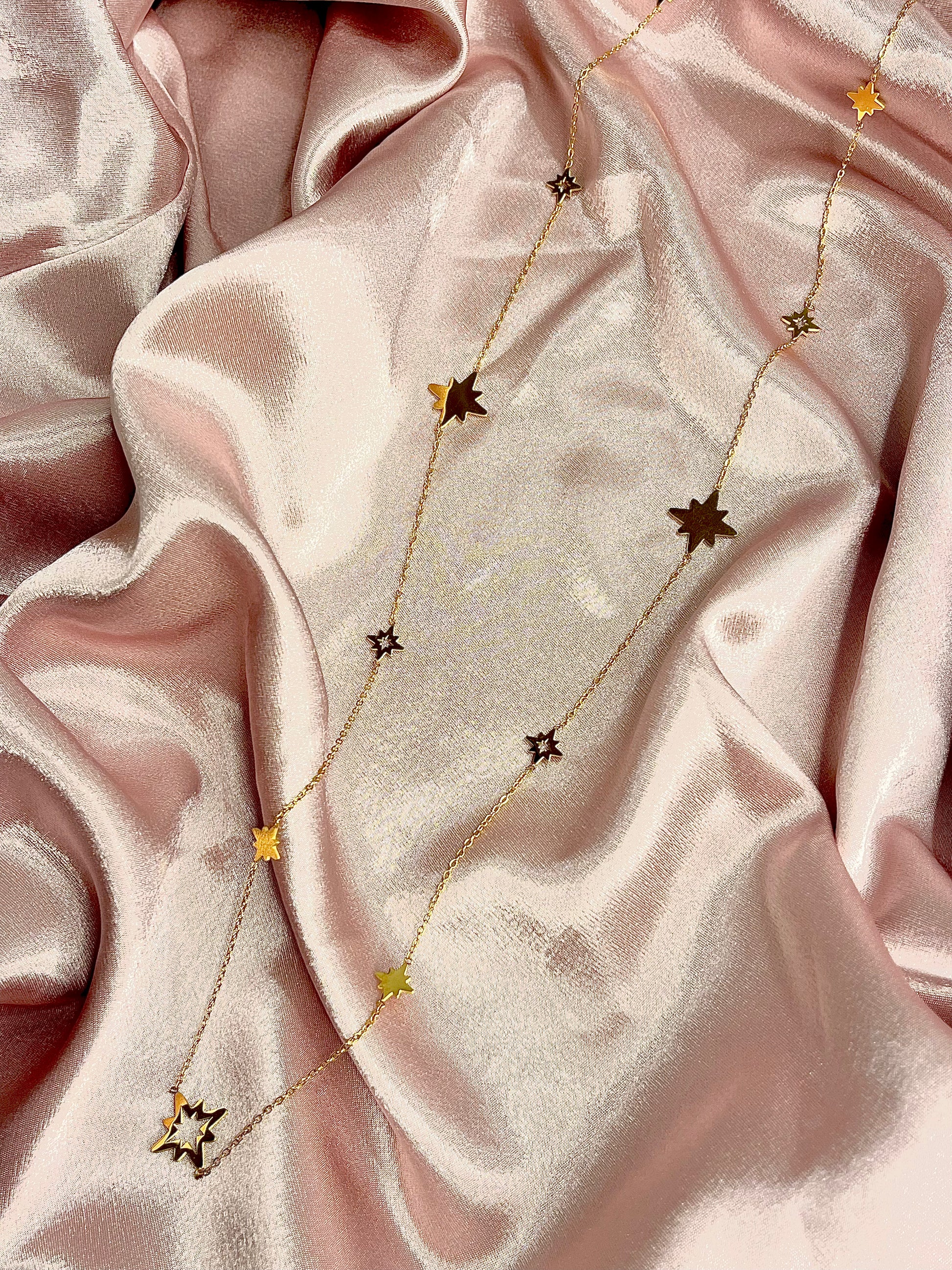Le sautoir Twinkle Star illumine vos tenues avec ses petites étoiles et détails scintillants, créant un bijou élégant et féminin. Conçu en acier inoxydable, il résiste à l’eau et ne ternit pas, conservant son éclat au fil du temps.